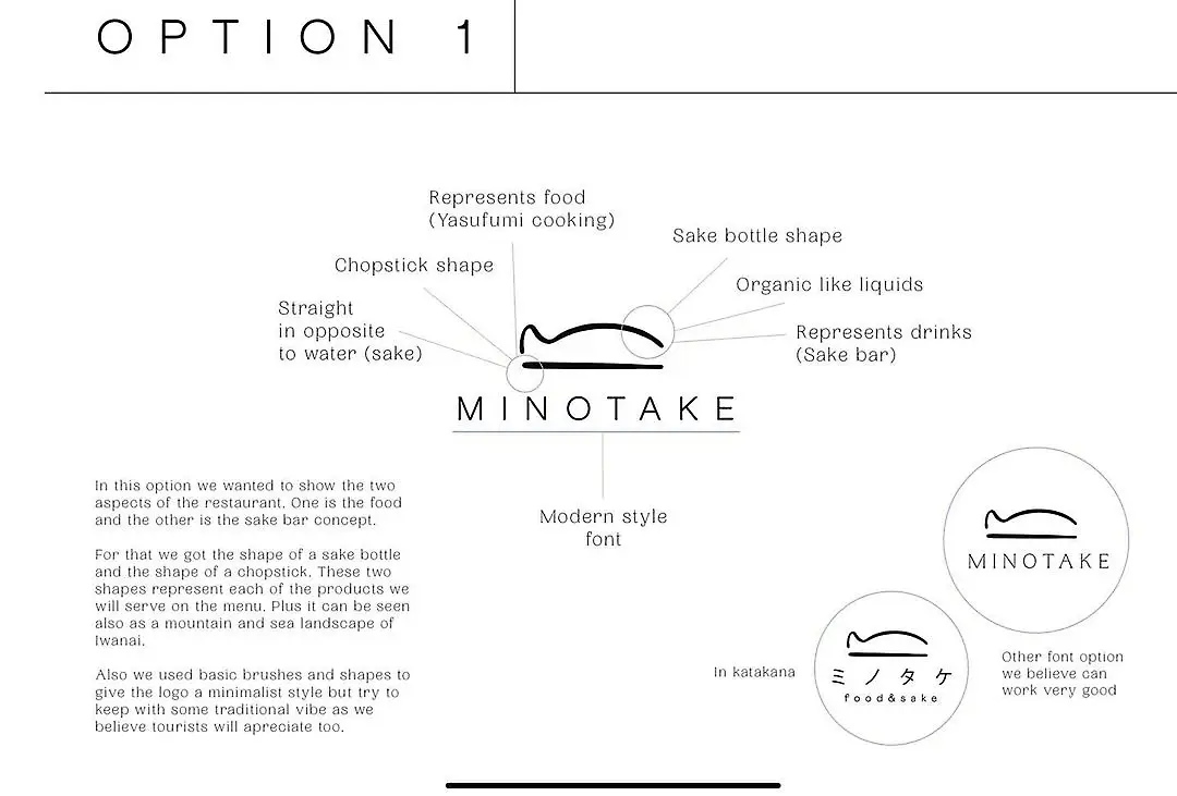 ロゴは、スペイン人の友人であるデザイナーの女性に制作してもらいました。箸と徳利のモチーフを用いることで、「食と酒(food and sake)」、「海と山(sea and mountain)」を表現しています。